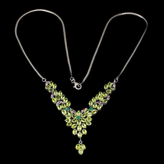 AusverkauftPeridot Smaragd Rhodolit Collier