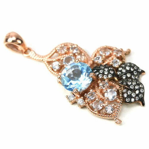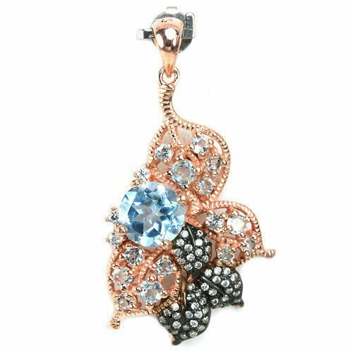 Very beautiful pendant with 15 blue topazes in the color sky blue & white cubic zirconia set in 925 sterling silver 585 rose gold plated and partially black rhodium plated