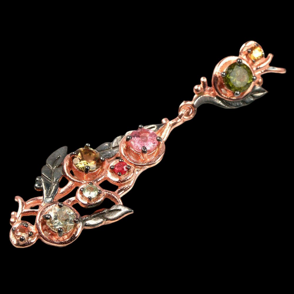 Great pendant with 8 tourmalines in different natural colors set in 925 sterling silver 585 rose and black gold plated