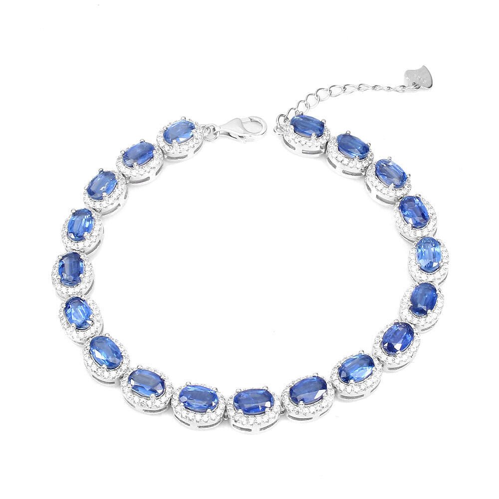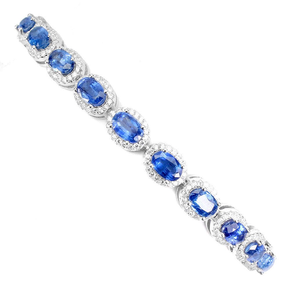 Bracelet with 19 cornflower blue kyanites & white cubic zirconia set in 925 sterling silver 585 white gold plated