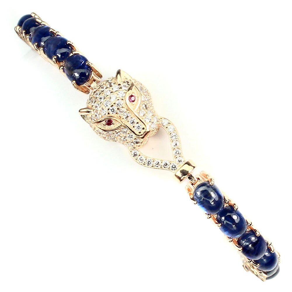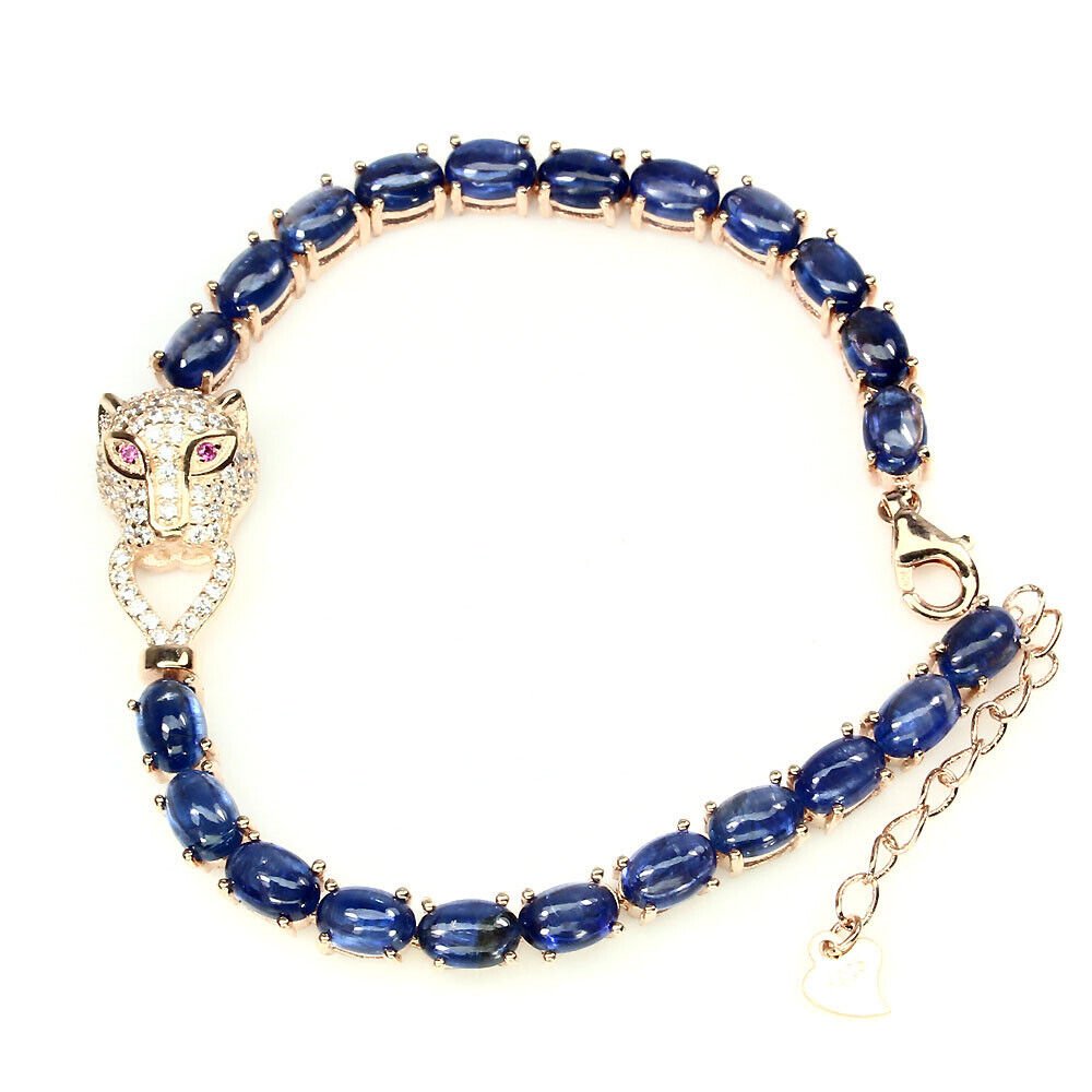 Big cat bracelet with 22 cornflower blue kyanites & white cubic zirconia set in 925 sterling silver 14 carat rose gold plated