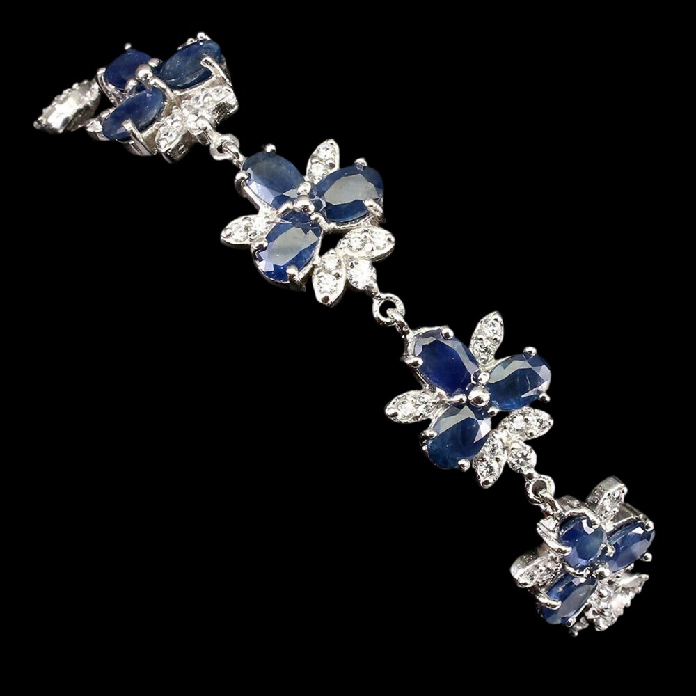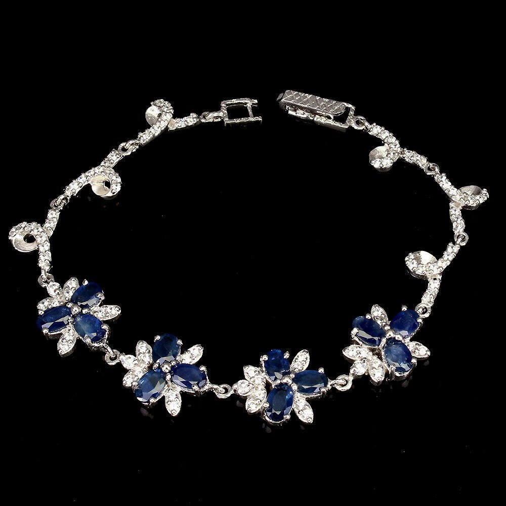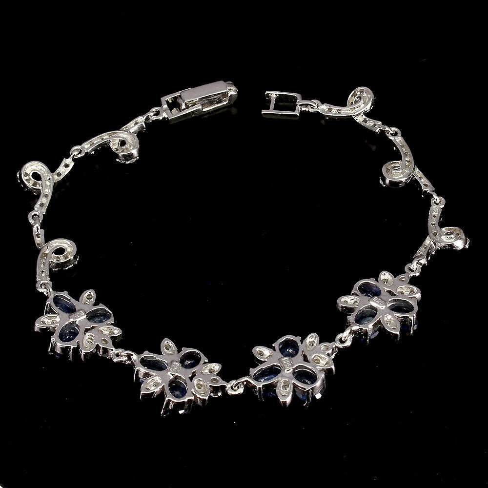 Floral design bracelet with 12 blue sapphires & white cubic zirconia set in 925 sterling silver 585 white gold plated