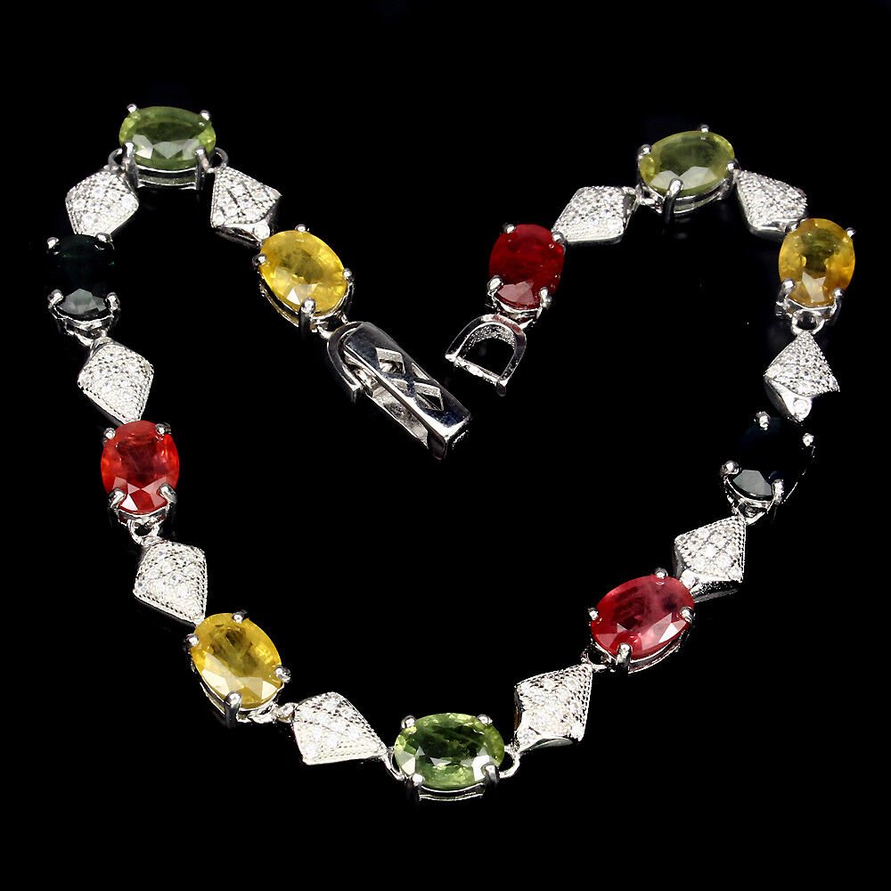 Charming bracelet with 11 large sapphires in yellow red green blue & white cubic zirconia set in 925 sterling silver 585 white gold plated