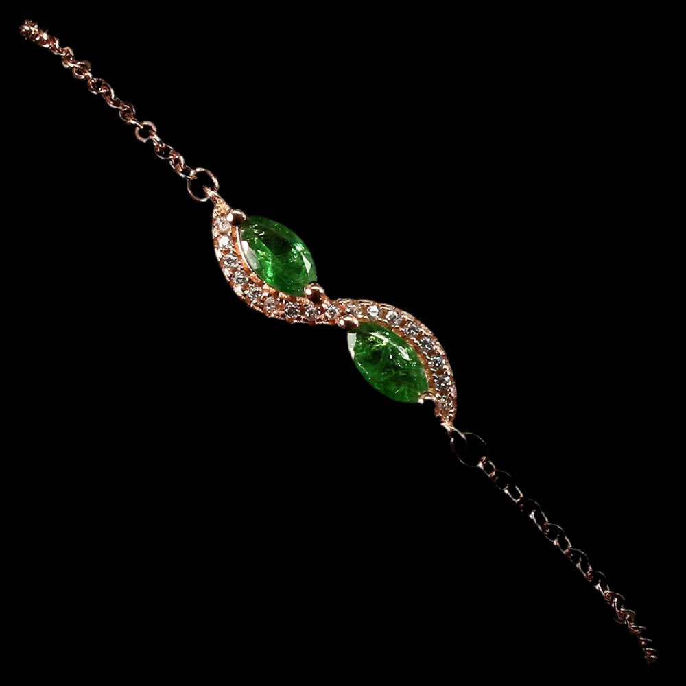 Delicate bracelet with 2 navette-cut tsavorites & white cubic zirconia set in 925 sterling silver 585 rose gold plated