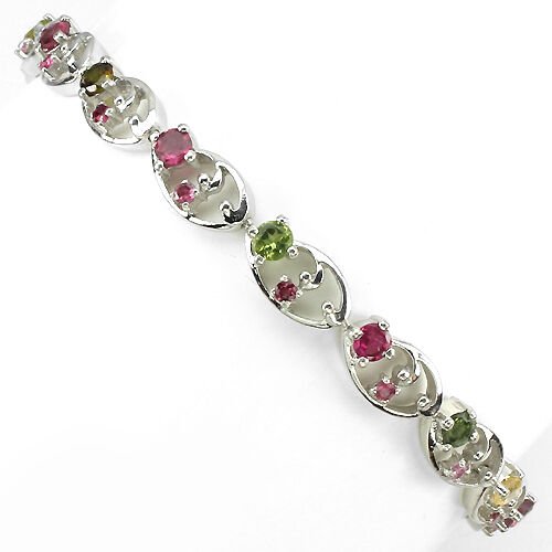 Bracelet with tourmalines in various natural colors set in 925 sterling silver 585 white gold plated