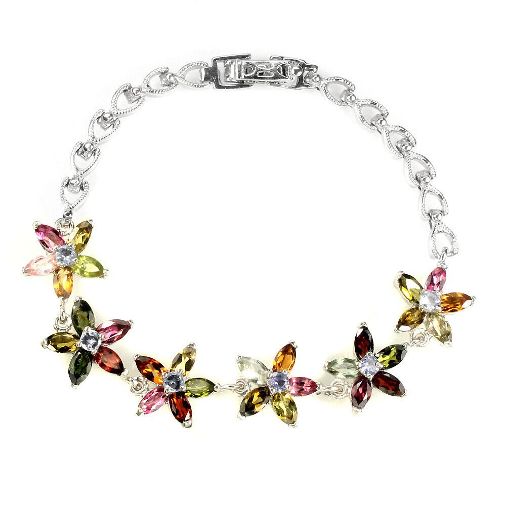 Floral bracelet with 30 tourmalines in various natural colors and 6 tanzanites set in 925 sterling silver 585 white gold plated