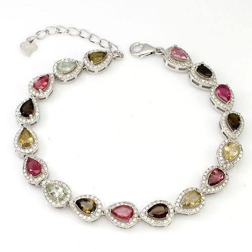 Classic bracelet with 17 tourmalines in different natural colors & white cubic zirconia set in 925 sterling silver 585 white gold plated