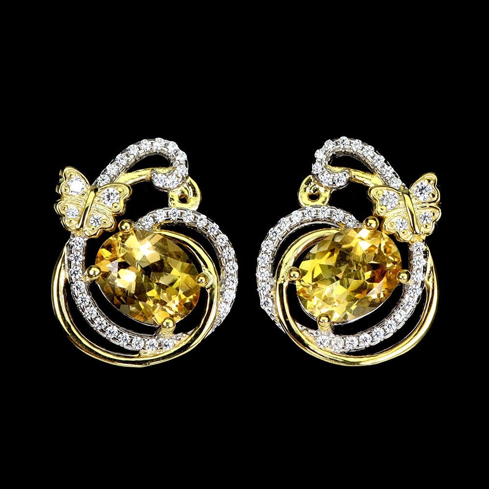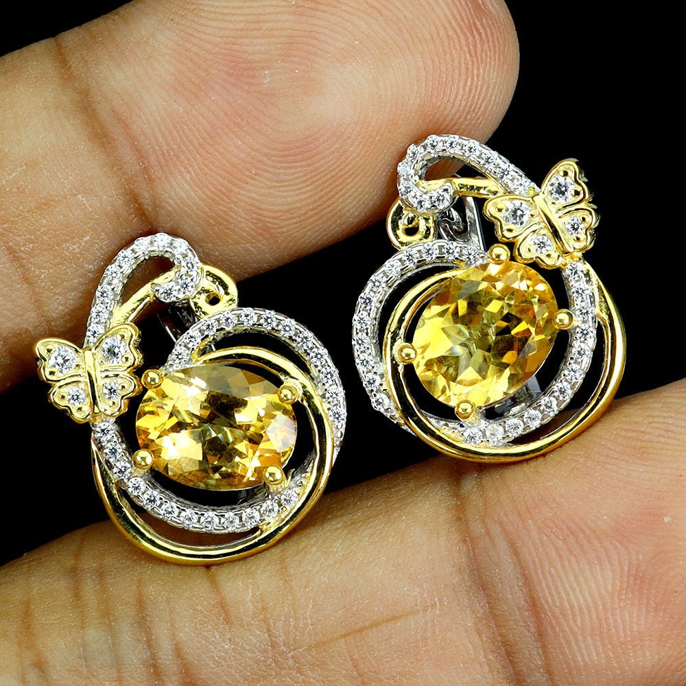 Earrings with butterflies, citrines & white zirconia set in 925 sterling silver 14 carat white gold and yellow gold plated