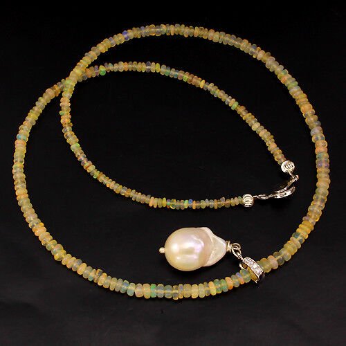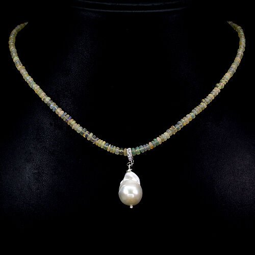 | Dimensions of jewelry | Opal necklace length 470 mm, diameter 4 mm, Pearl pendant 36 x 12 mm |