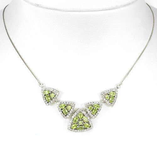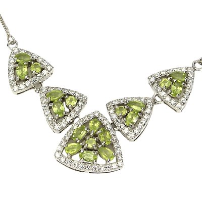 Necklace with 19 peridots & white cubic zirconia set in 925 sterling silver 585 white gold plated