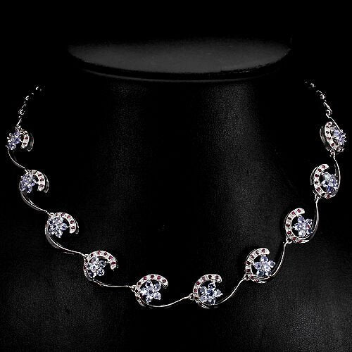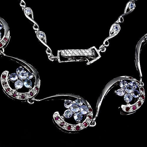 Great solid necklace with 60 tanzanites and 70 rubies set in 925 sterling silver 585 white gold plated