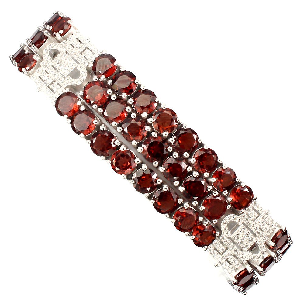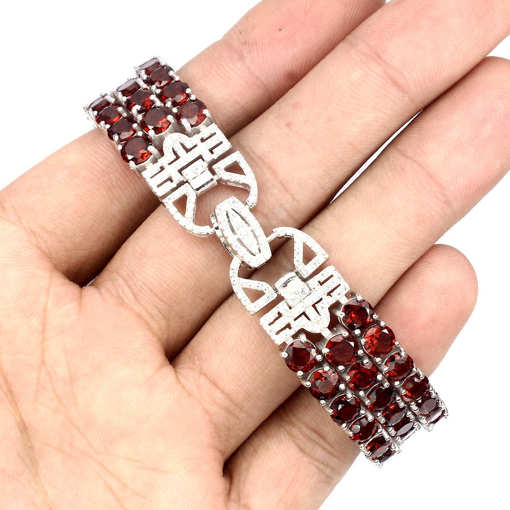 Exceptionally beautiful bracelet with Mozambique garnet & white zirconia set in 925 sterling silver 14 carat white gold plated