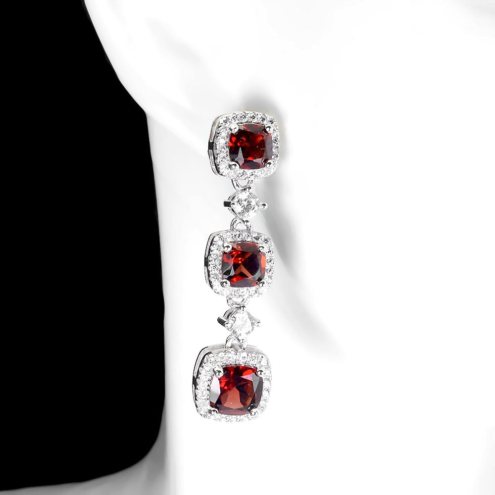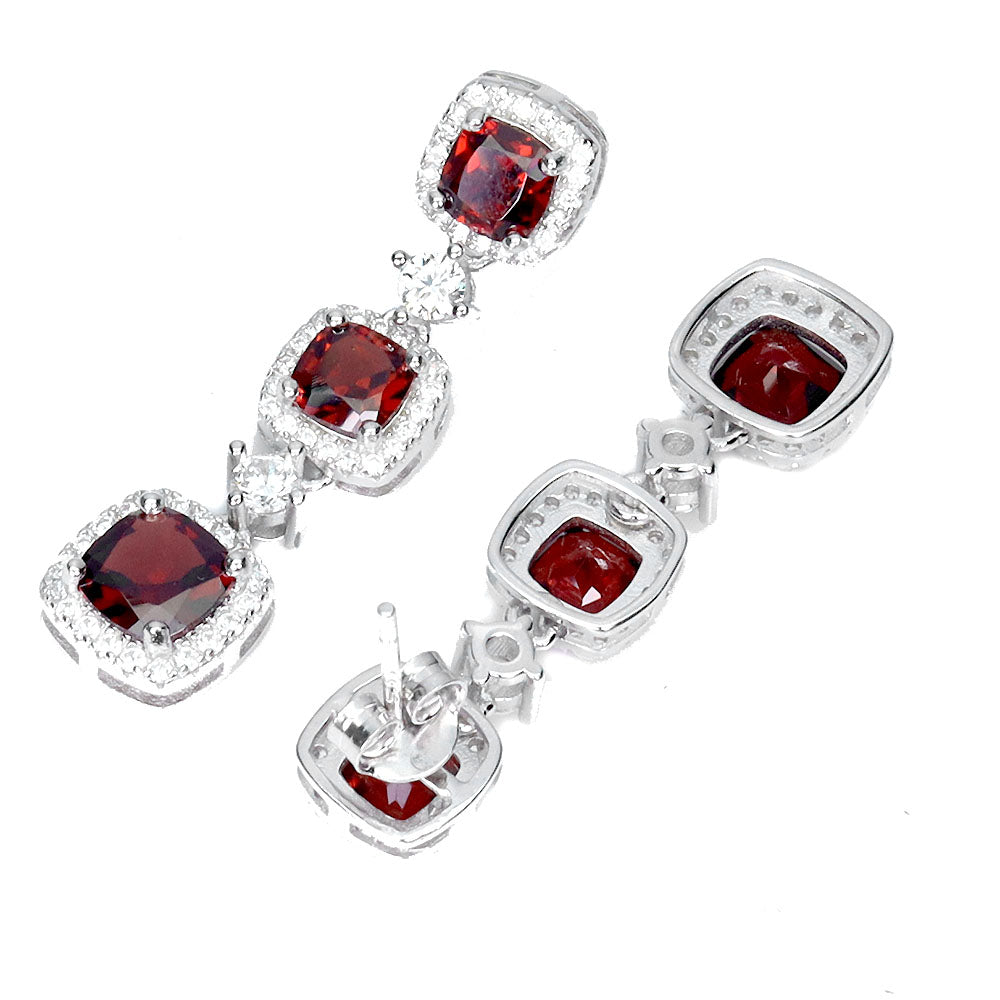 Earrings with garnets & white zirconia set in 925 sterling silver 14 carat white gold plated
