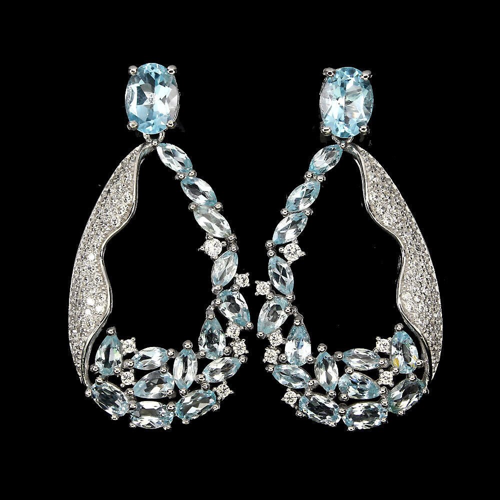 Ultra-glamorous earrings with a total of 30 blue topazes in the color sky blue & white cubic zirconia set in 925 sterling silver 585 white gold plated