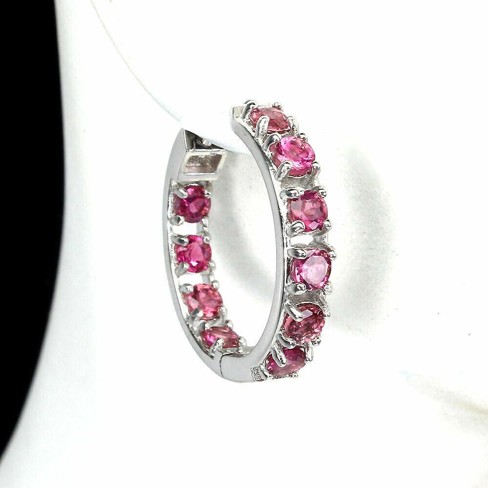 Slightly larger folding hoop earrings with a total of 20 pink-pink tourmalines set in 925 sterling silver 585 white gold-plated