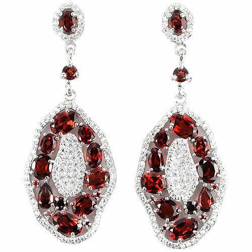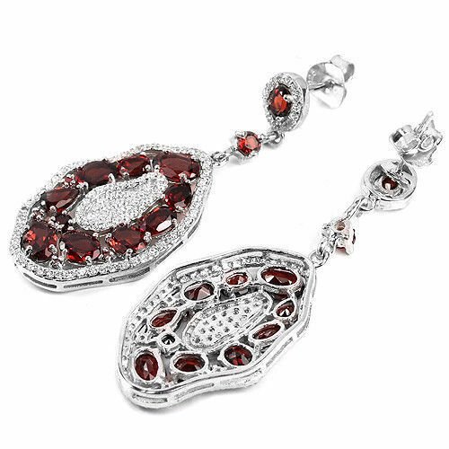 Large earrings with a total of 32 garnet stones & white cubic zirconia set in 925 sterling silver 585 white gold plated