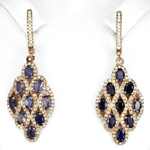 Very distinctive earrings with a total of 18 iolites & white zirconia set in 925 sterling silver 585 rose gold plated
