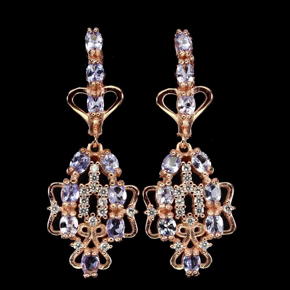 Extremely glamorous earrings with a total of 20 tanzanites & white cubic zirconia set in 925 sterling silver 585 rose gold plated