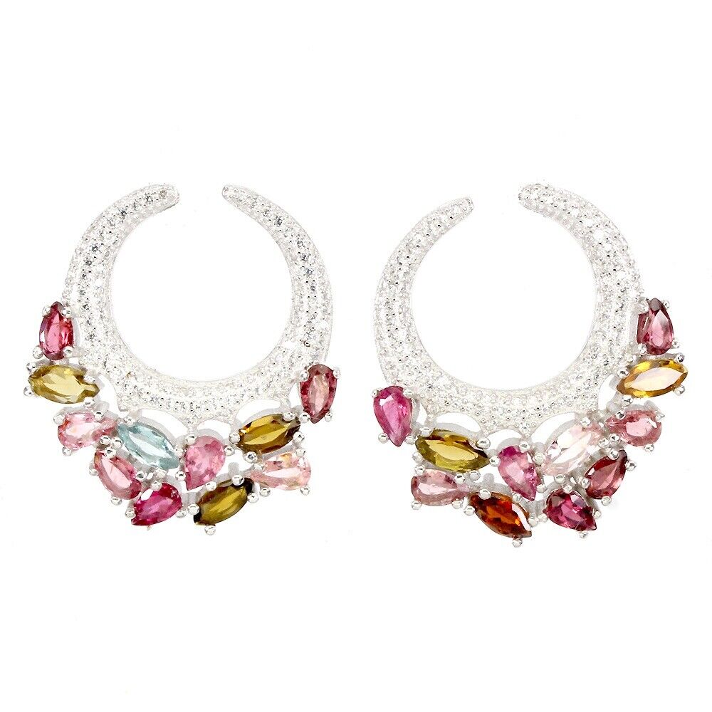 Exceptionally crafted earrings with a total of 22 tourmalines in various natural colors & white cubic zirconia set in 925 sterling silver 585 white gold plated
