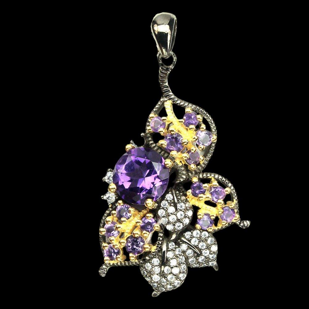 Very beautiful pendant with 15 amethysts & white zirconia set in 925 sterling silver black rhodium-plated and partially 585 yellow gold-plated
