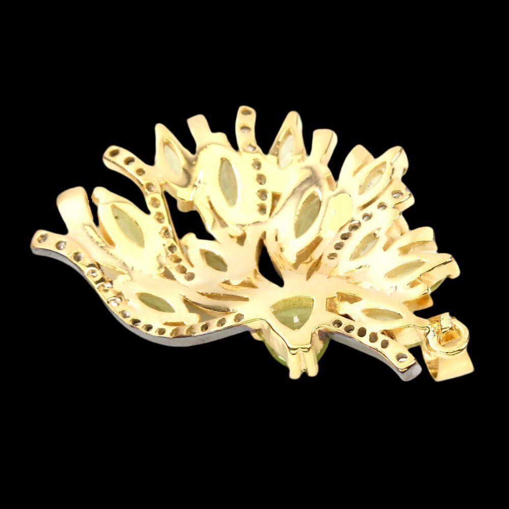 Mega-beautiful coral-shaped pendant with 12 peridots & cubic zirconia set in 925 sterling silver 585 yellow gold-plated and partly black-rhodium-plated