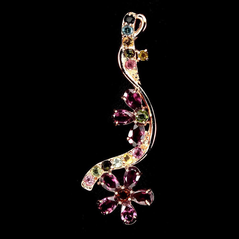 Great pendant with 6 rhodolites, 4 tanzanites and 12 tourmalines in different natural colors set in 925 sterling silver 585 rose gold plated