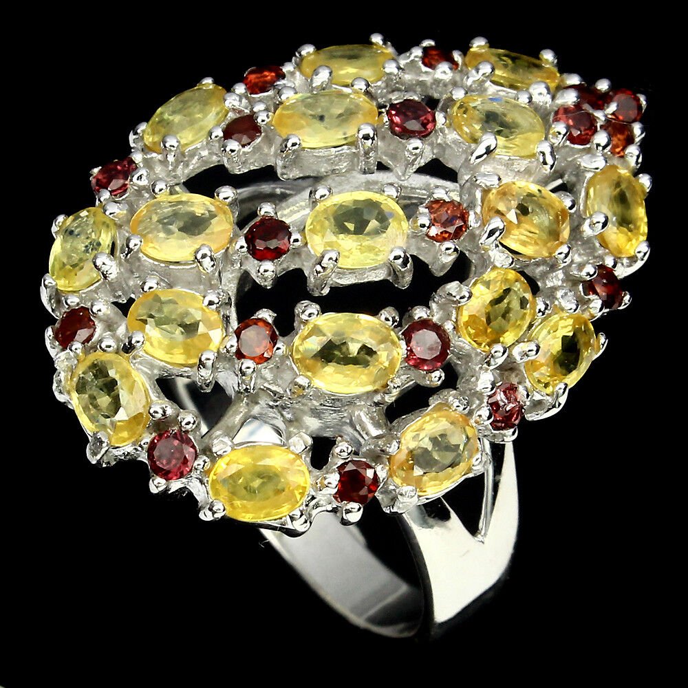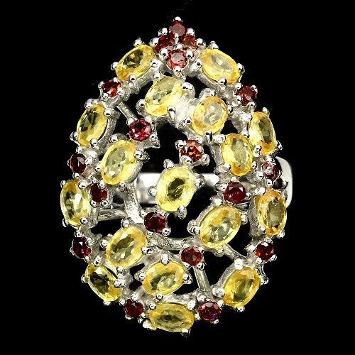Beautiful large ring with 17 yellow sapphires and 17 garnet stones set in 925 sterling silver 585 white gold plated