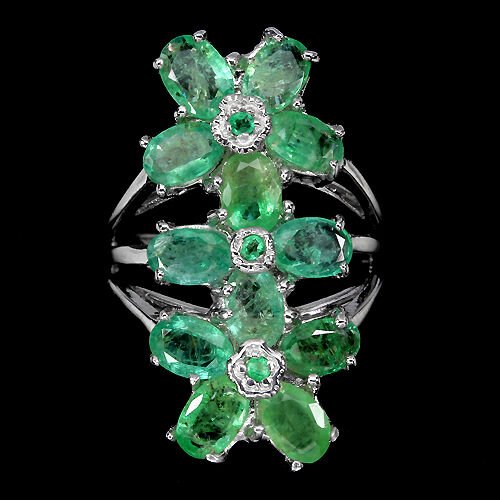 Charming flower ring with 15 Brazilian emeralds set in 925 sterling silver 585 white gold plated
