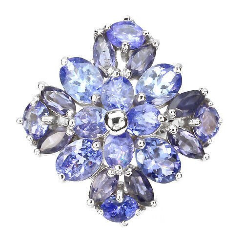 Very noble large ring with 12 tanzanites and 8 iolites set in 925 sterling silver 585 white gold plated
