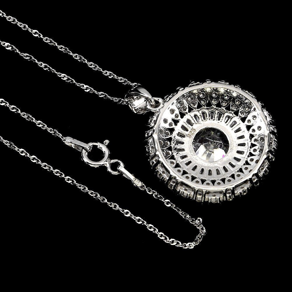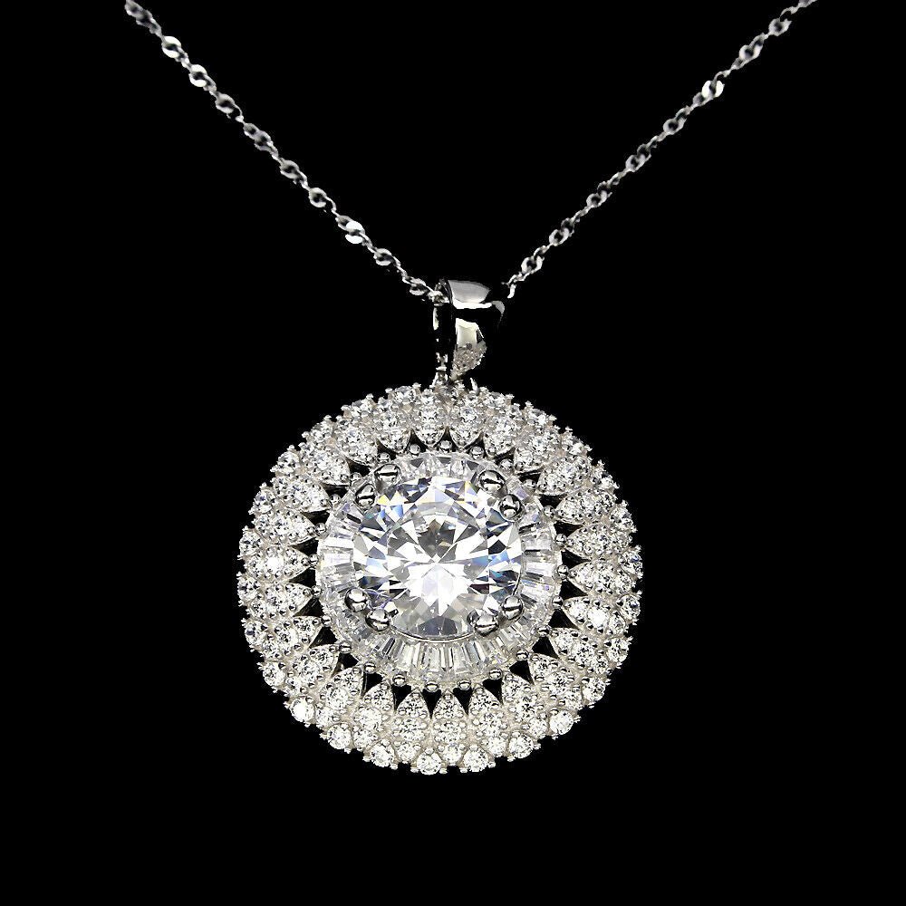 Very beautiful necklace with pendant with white cubic zirconia set in 925 sterling silver 585 white gold plated