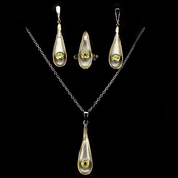 Peridot Set Earrings Necklace Pendant Ring