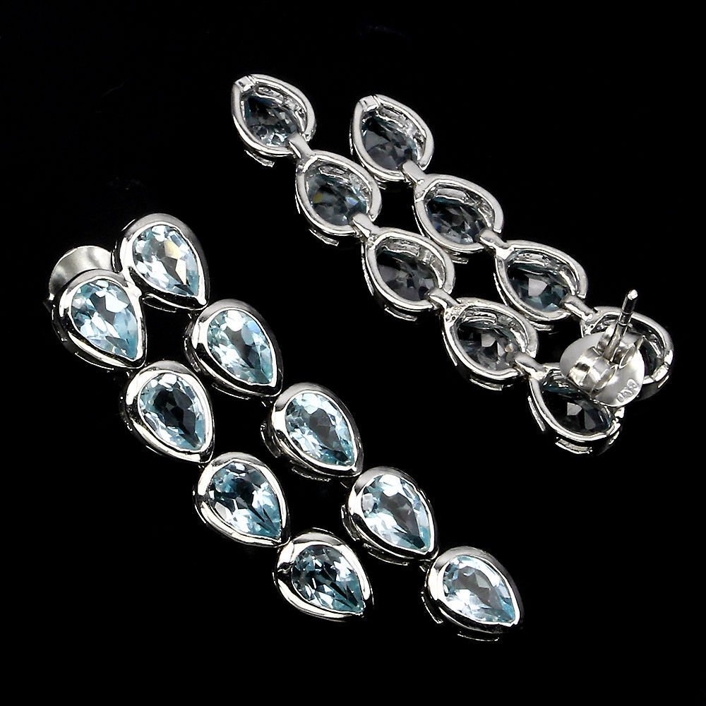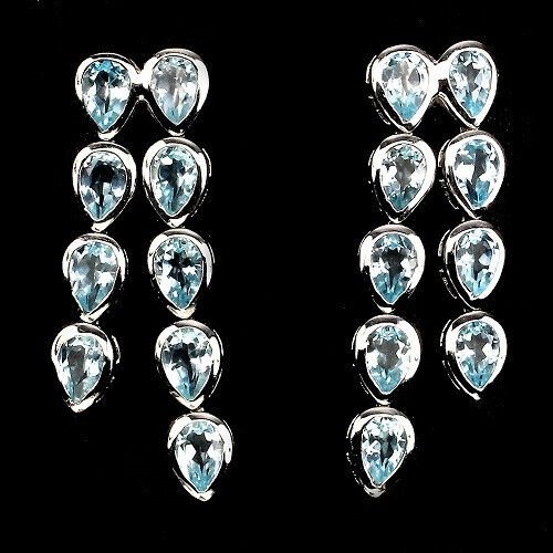 Charming earrings with a total of 18 blue topazes in the color sky blue set in 925 sterling silver 585 white gold plated