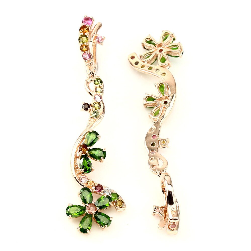 Very tasteful large earrings with a total of 16 Russian diopsides and 40 tourmalines set in 925 sterling silver 585 rose gold plated