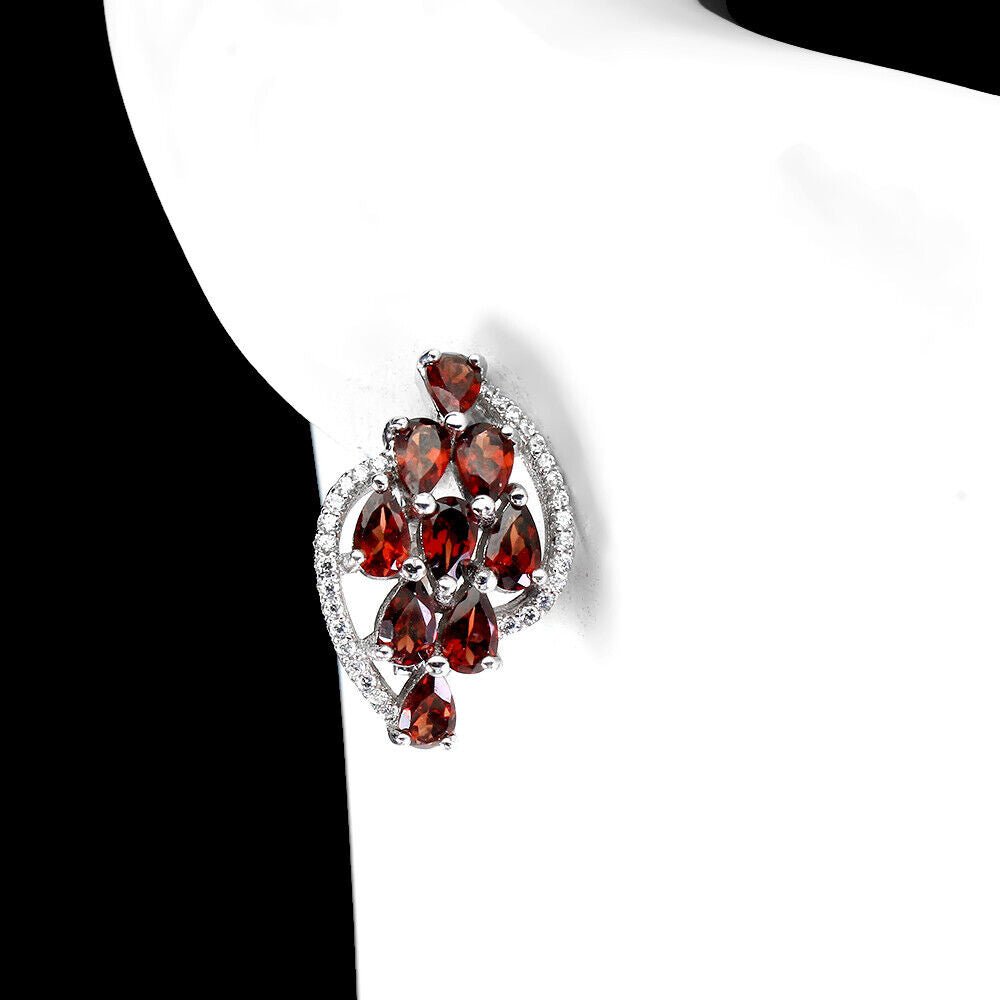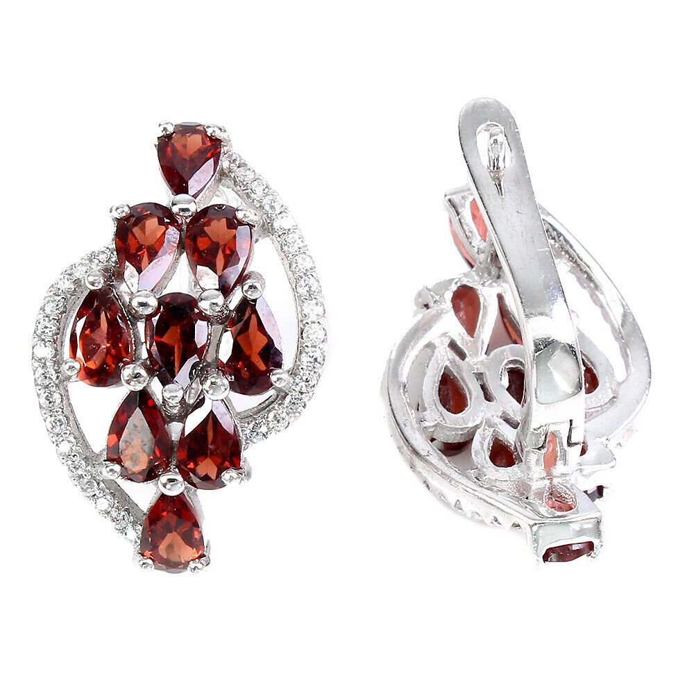 Earrings with a total of 18 garnet stones & white cubic zirconia set in 925 sterling silver 585 white gold plated