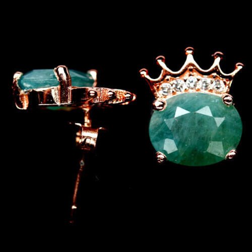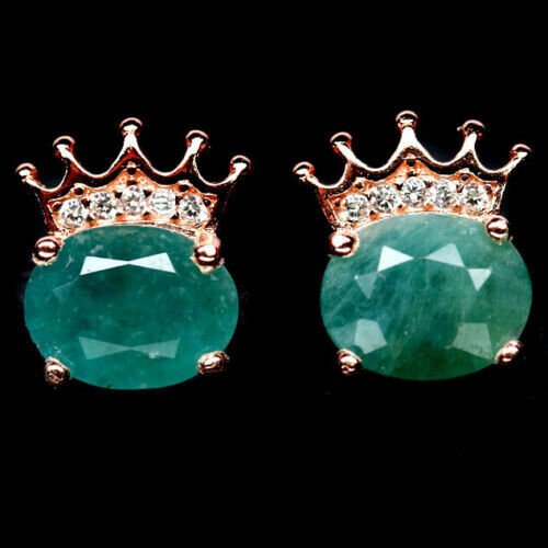 Crown earrings with a total of 2 oval-cut grandidierites & white cubic zirconia set in 925 sterling silver 585 rose gold plated