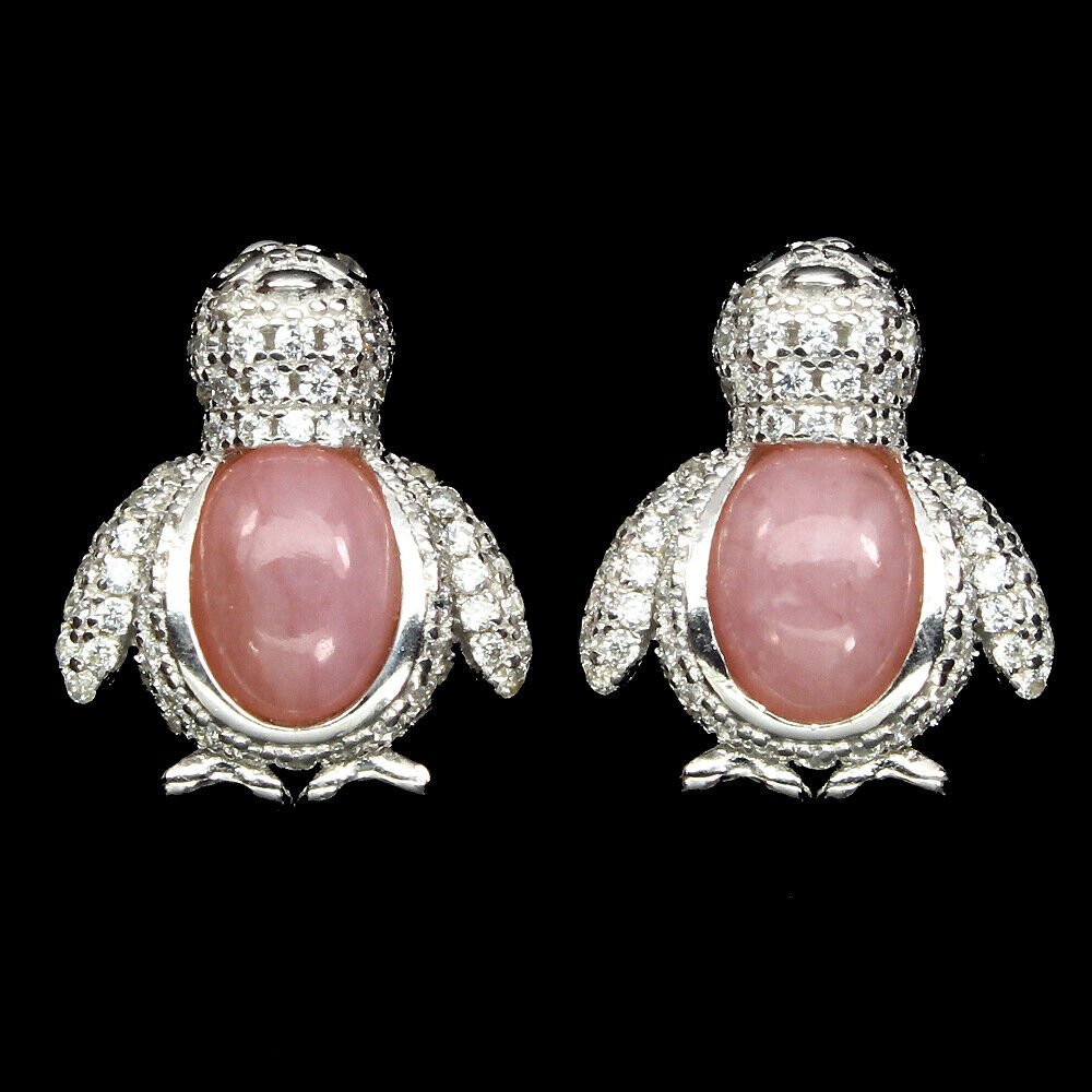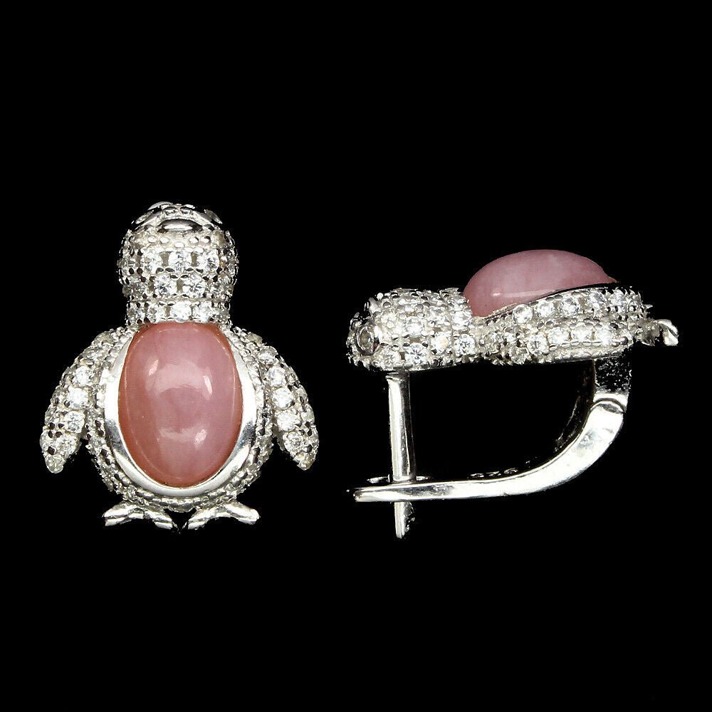 Lovely penguin earrings with a total of 2 pink opals & white cubic zirconia set in 925 sterling silver 585 white gold plated