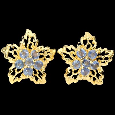 Sweet filigree ear studs with a total of 12 blue sapphires set in 925 sterling silver 585 yellow gold plated