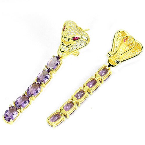 Exotic cobra earrings with a total of 10 amethysts & white cubic zirconia set in 925 sterling silver 585 yellow gold plated