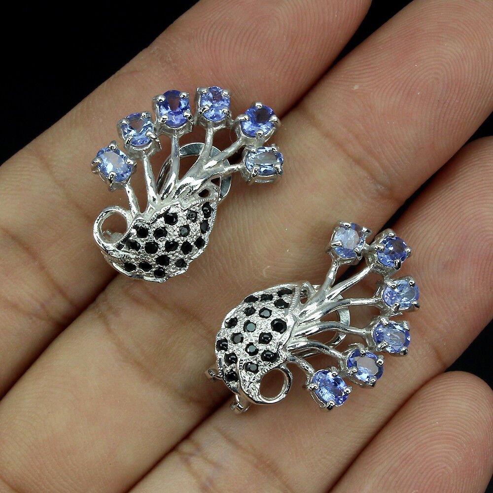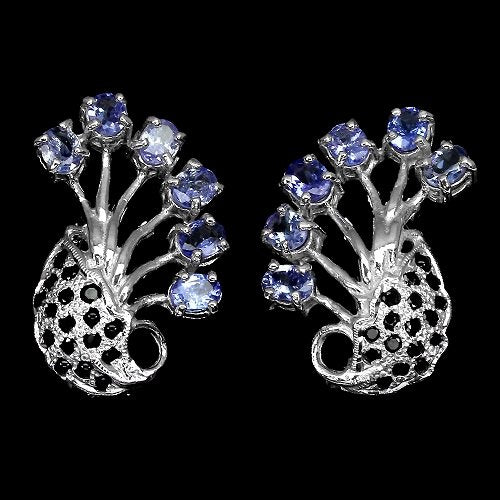 Beautiful earrings with a total of 12 tanzanites and 36 blue sapphires set in 925 sterling silver 585 white gold plated
