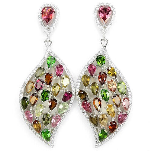 Wonderful large earrings with a total of 42 tourmalines in various natural colors set in 925 Sterling silver 585 white gold plated
