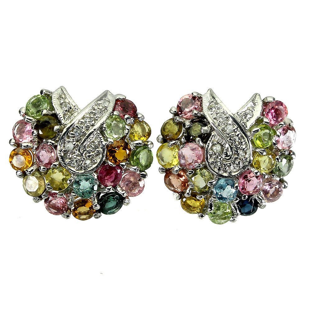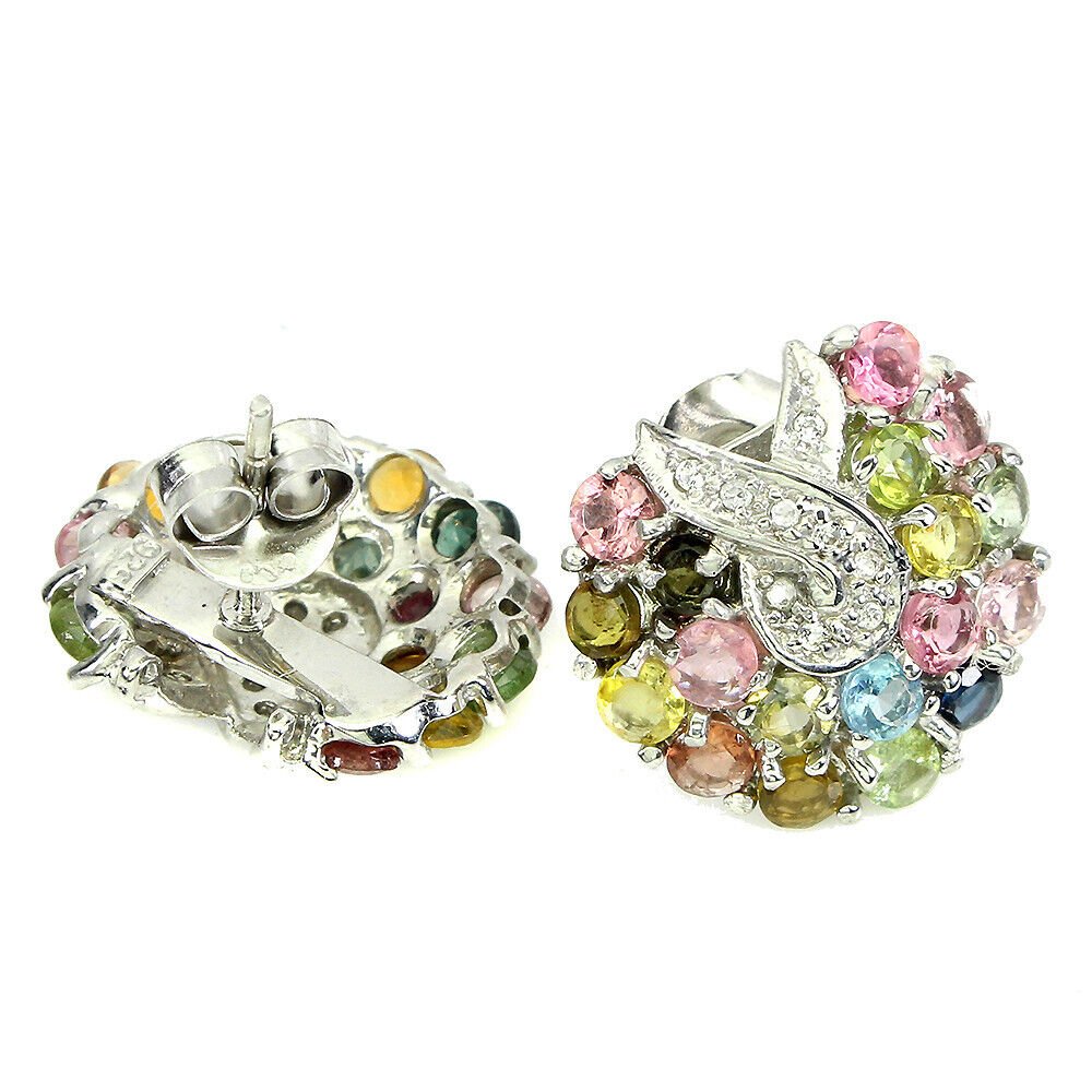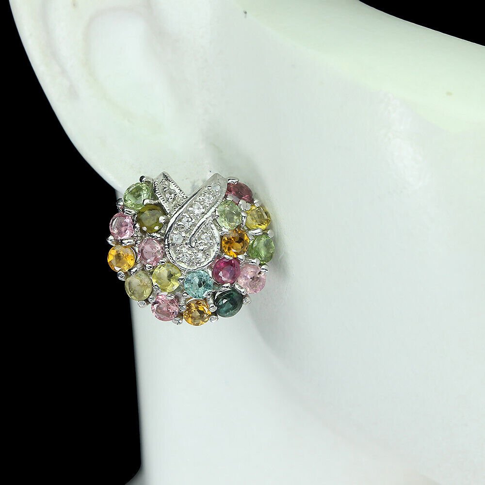 Great ear studs with a total of 36 tourmalines in various natural colors and 18 white topazes set in 925 sterling silver 585 white gold plated