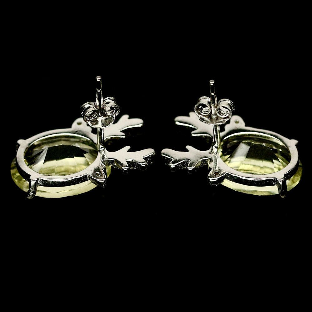 Sweet ear studs with a total of 2 lemon quartzes in the very rare concave cut & white cubic zirconia set in 925 sterling silver 585 white gold plated
