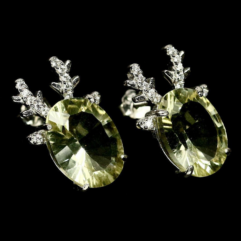 Lemon Quartz Concave Reindeer Bambi Stud Earrings