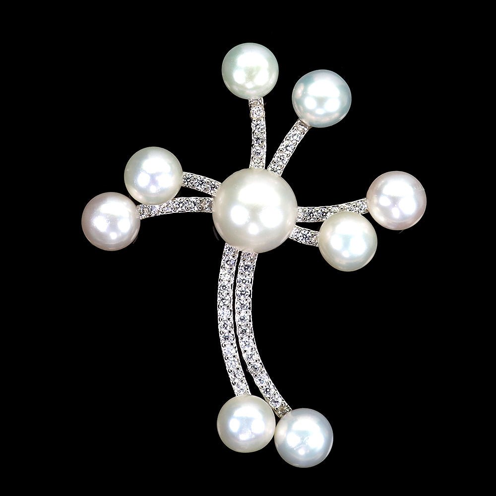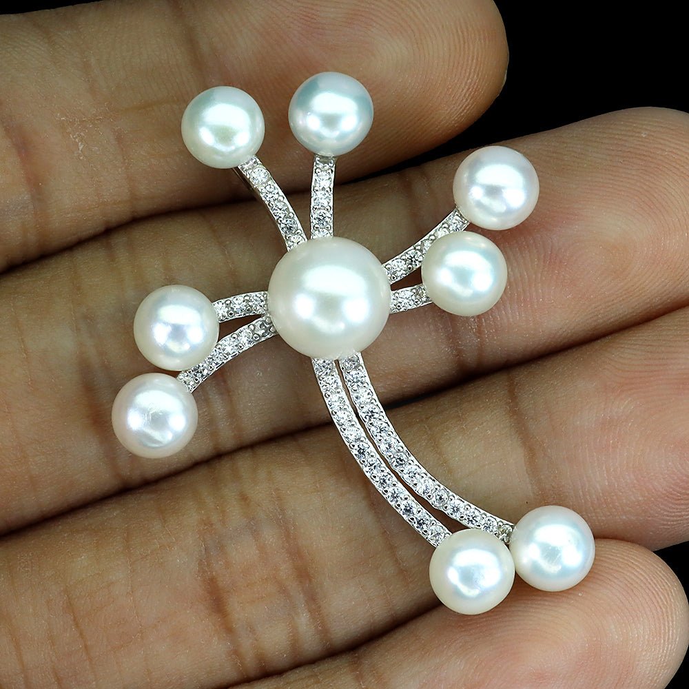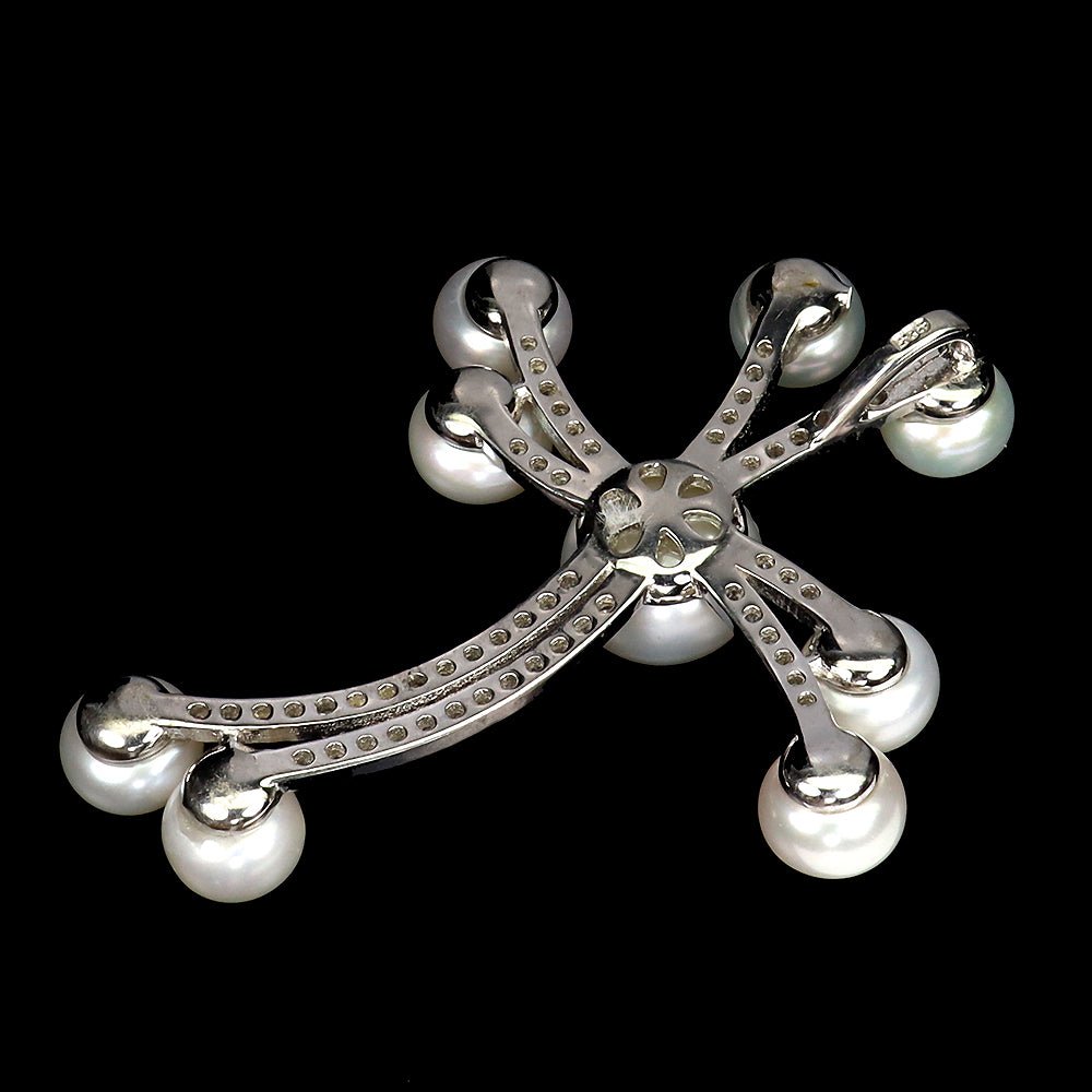 Cross pendant with white freshwater cultured pearls & white zirconia set in 925 sterling silver 14 carat white gold plated