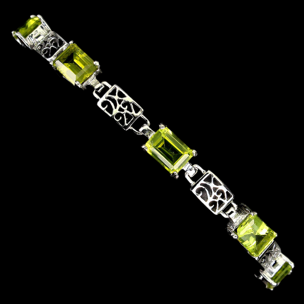 Bracelet with octagon cut peridots set in 925 sterling silver and 14 carat white gold plated