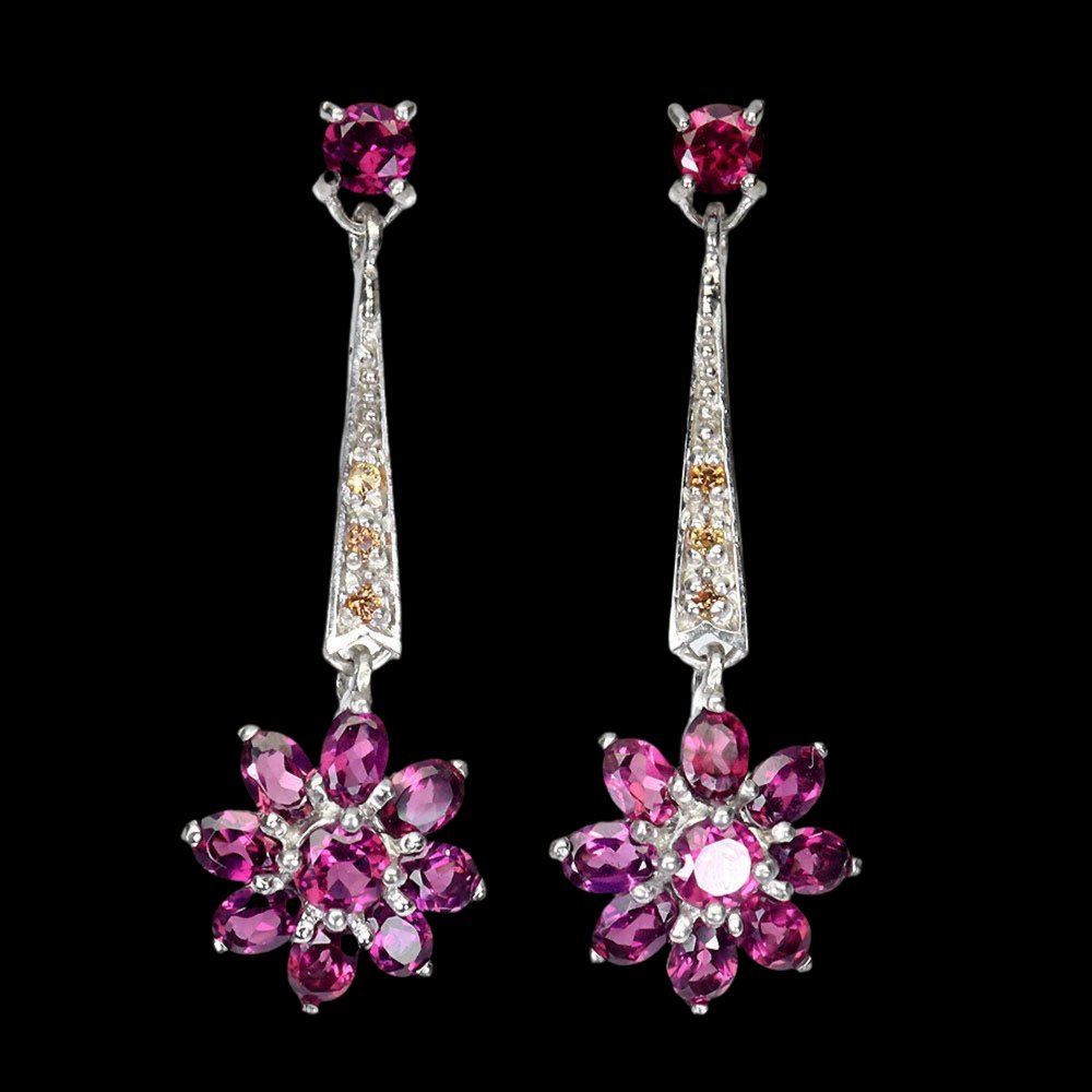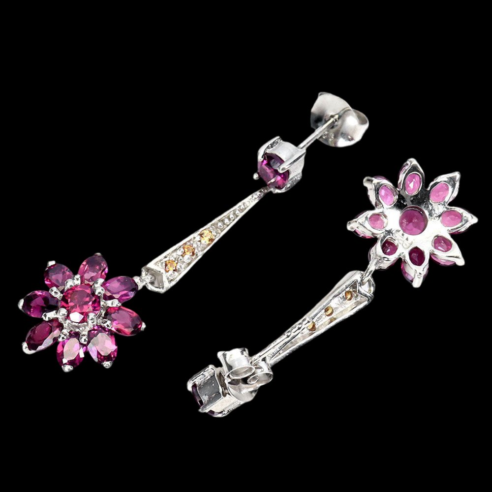 Earrings with rhodolites and yellow sapphires set in 925 sterling silver and 14 carat white gold plated