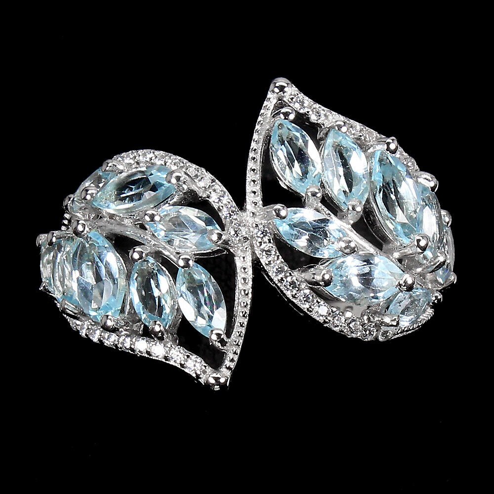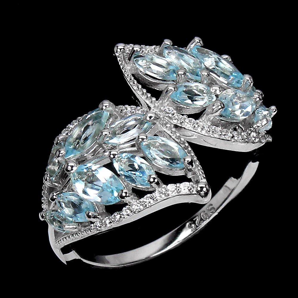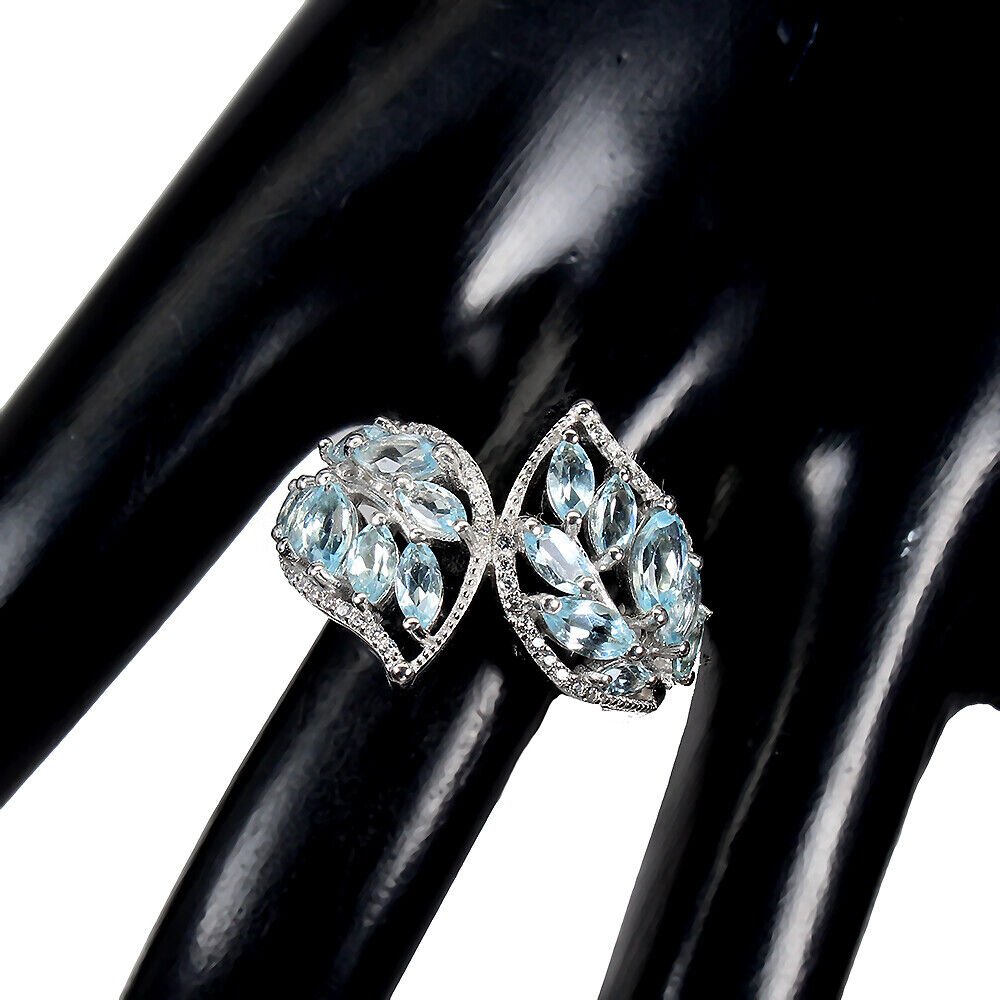 Large ring with 16 blue topazes in the color sky blue & white cubic zirconia set in 925 sterling silver 585 white gold plated
