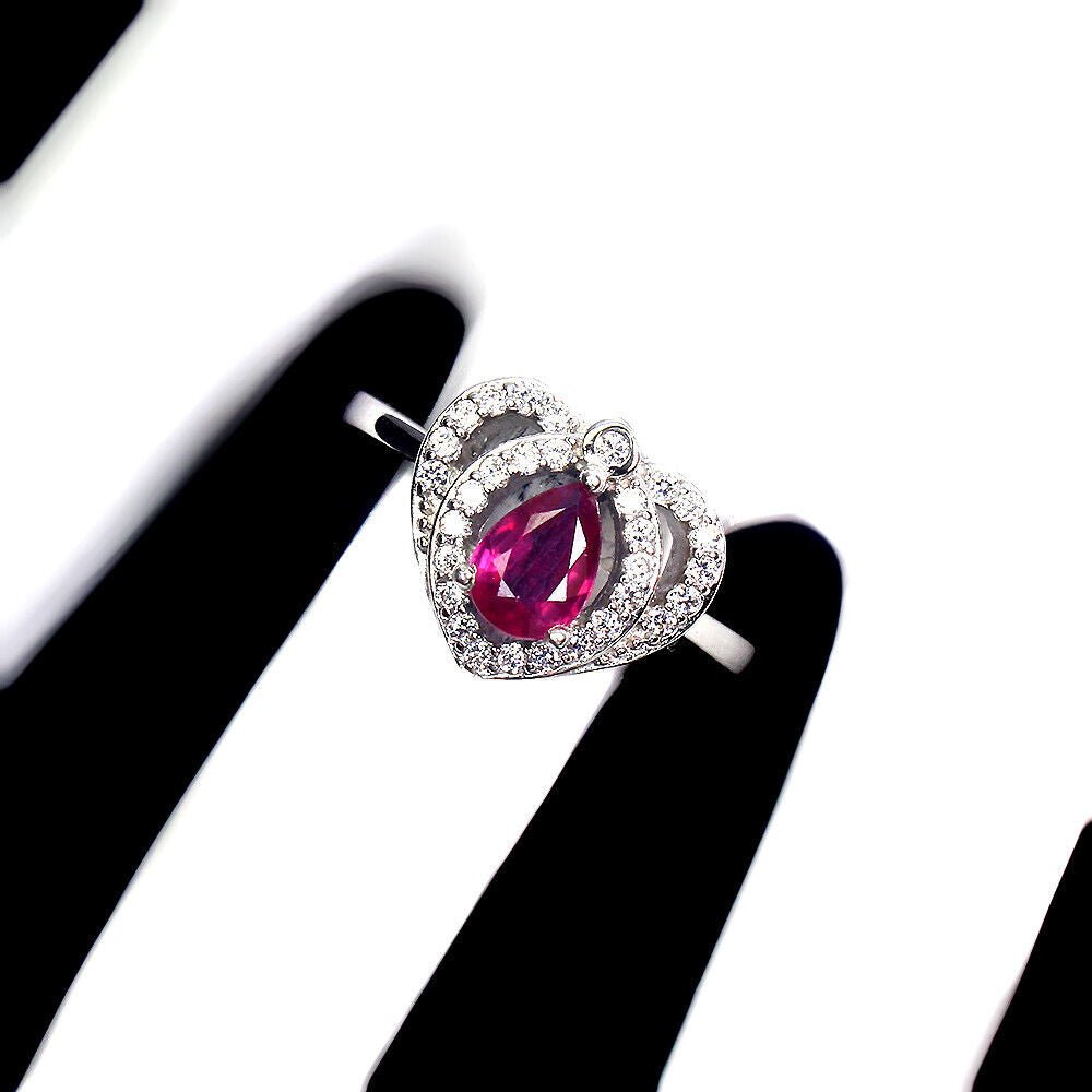 Sweet heart ring with a ruby and white topazes set in 925 sterling silver 585 white gold plated