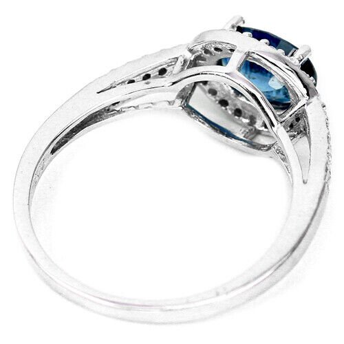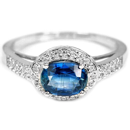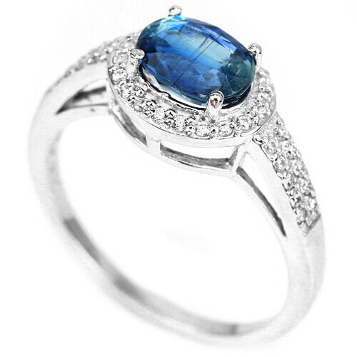 Great solitaire ring with a cornflower blue kyanite & white cubic zirconia set in 925 sterling silver 585 white gold plated
