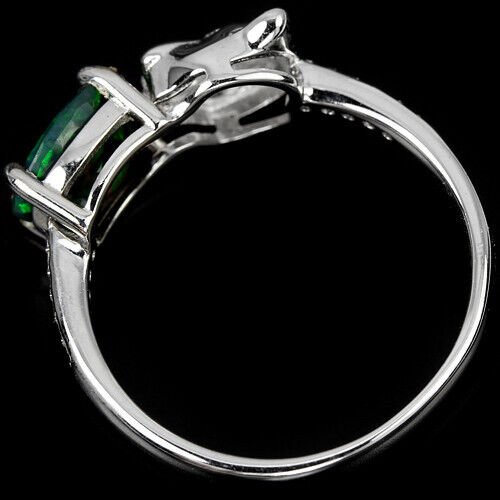 Big cat ring with a black opal & white cubic zirconia set in 925 sterling silver 585 white gold plated